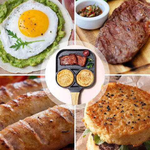 Sartén antiadherente 3 en 1 con parrilla dividida, mango resistente al calor.